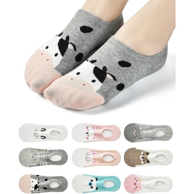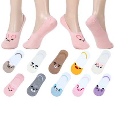 10 pairs of ladies cute animal face pattern invisible invisible low top boat shoes