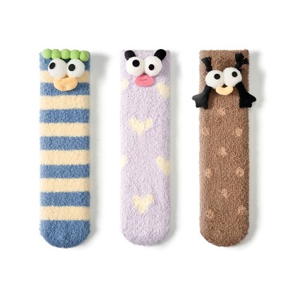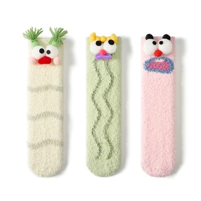 Thick socks lady funny autumn and winter plus velvet thick coral velvet cute stockings plush warm home sleeping floor socks