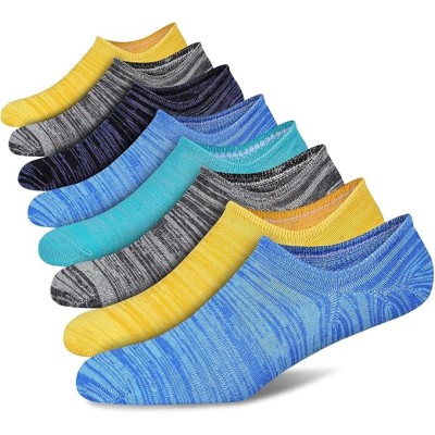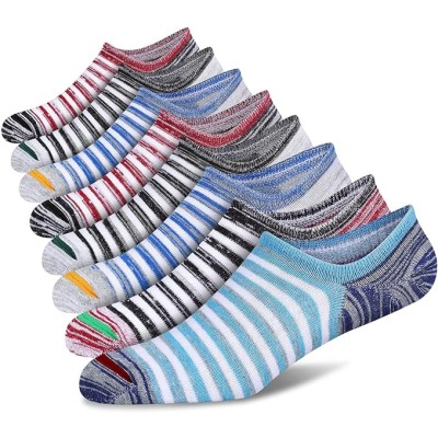 Mens No Show Cotton Socks 8 Pack Low Cut Casual Sock with Non-Slip Grips