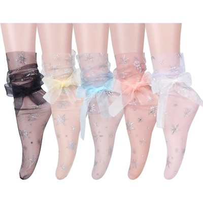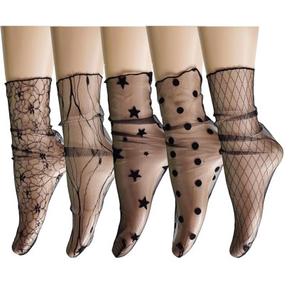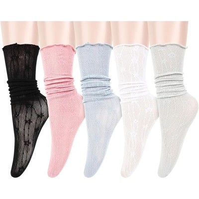 Loose Lace Ankle Socks Lace Women Tulle Socks Dress Socks Sexy See Through Socks Transparent Pretty Socks 5 pair