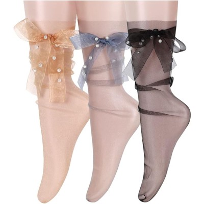 Women Sheer Lace Socks Fashion Girls Tulle Slouch Mesh Socks Loose Clear Socks