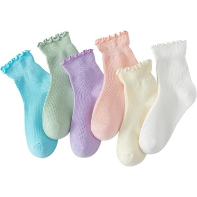 6 Pairs of Ruffle Socks Women, Ruffle Turn-Cuff Casual Cute Girl Ruffle Socks Breathable Cool Ruffle Ankle Socks