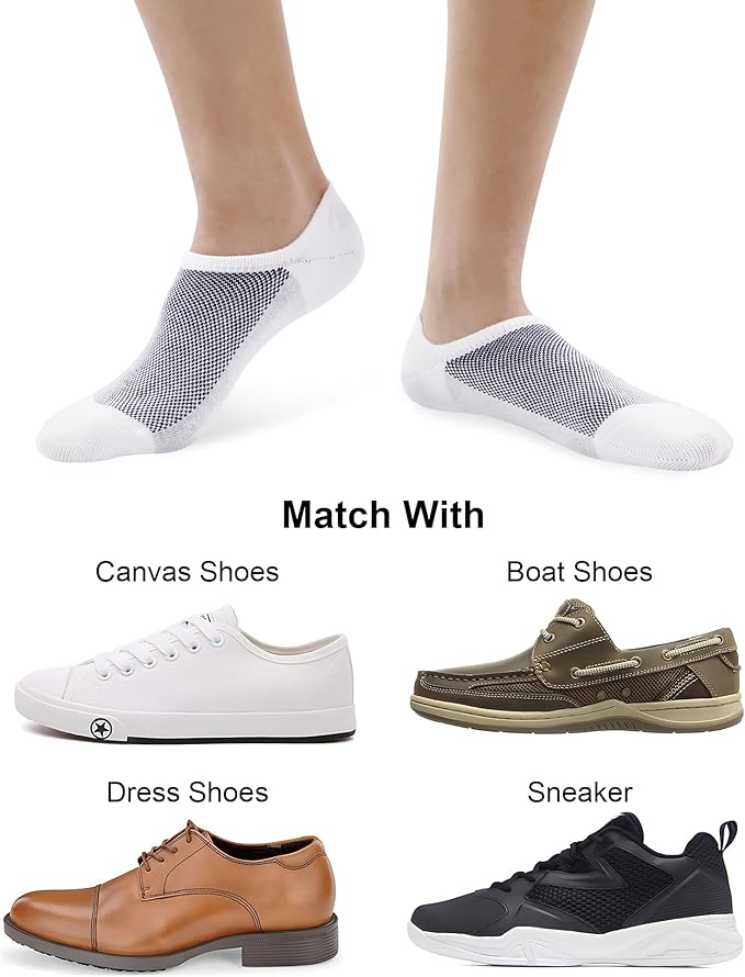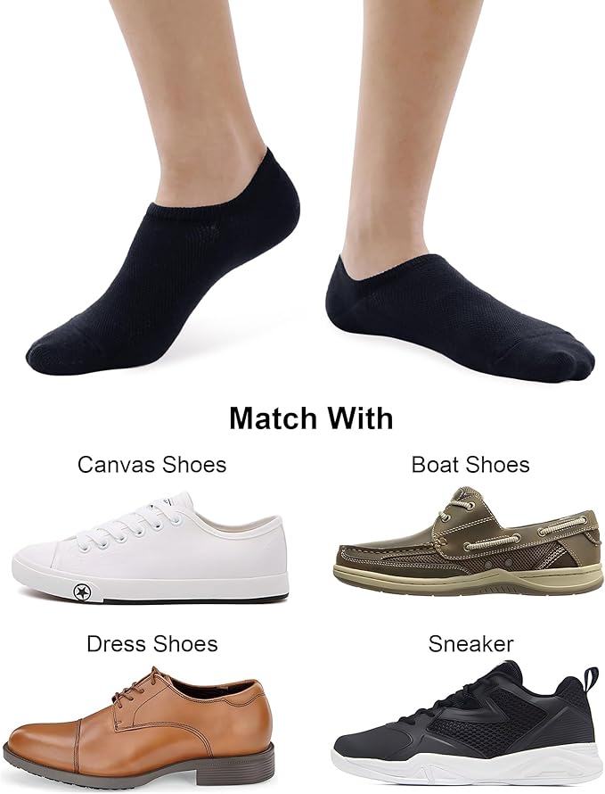 Versatile: These men's low-top cotton invisible socks are perfect for sneakers and most casual shoes, but not for boat shoes or low-tops